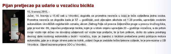 ovo se desi kad se sretnu nekoliko idiota (ne mislim na curu). glupa pijandura za volanom, te cura sa posebnim potrebama (kognitivno) kojoj je pametni roditelj tutnuo u ruke bicikl, smartphone i slusalice, te je pustio u promet.