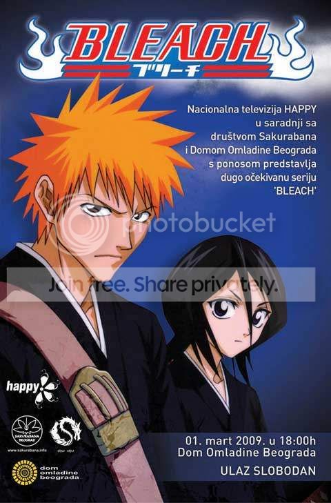 U Domu omladine posetioci će moći premijerno da pogledaju prve dve epizode serije Bleach prevedene na srpski jezik. Nakon projekcije biće održan Cosplay party (maskenbal inspirisan likovima iz japanskih anime serija).