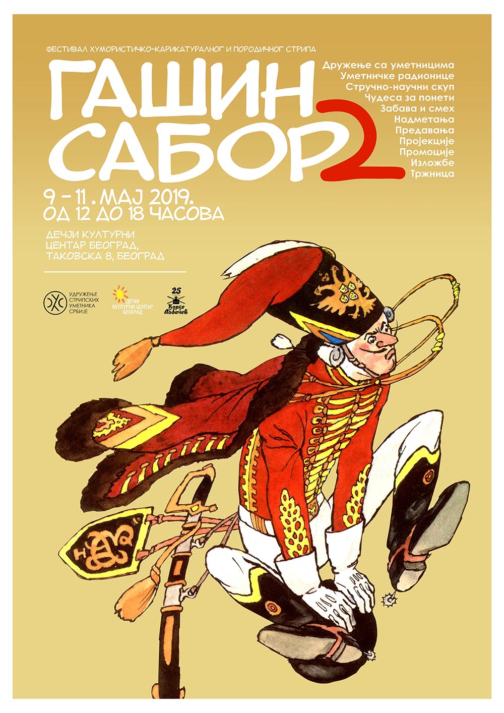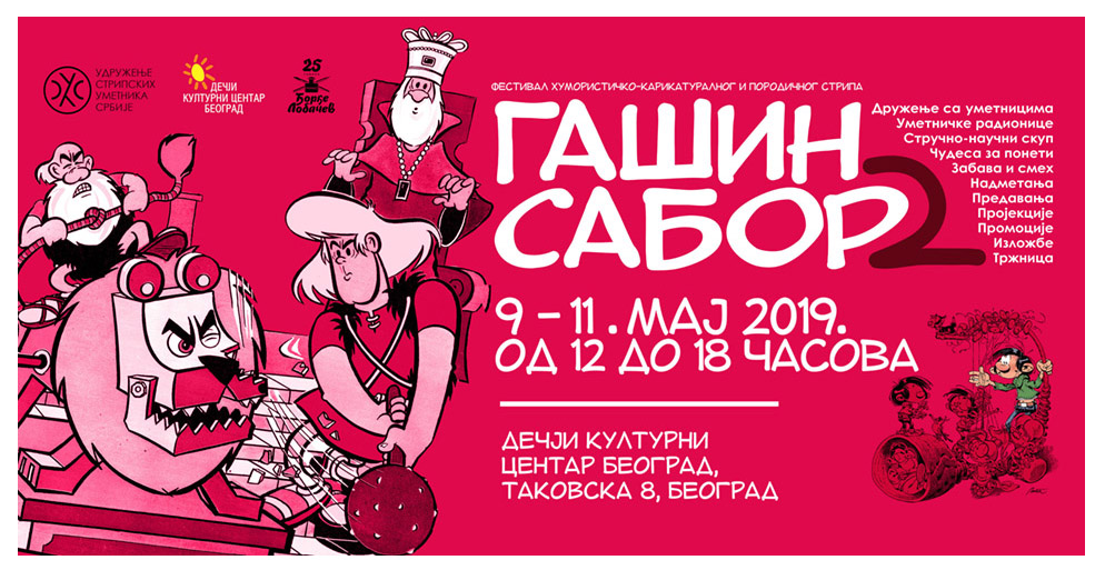 Међународни фестивал хумористичко-карикатуралног и породичног стрипа Гашин сабор — тематски јединствен у Југоисточној Европи — своје друго редовно издање поново има у Дечјем културном центру Београда, од четвртка 9. маја, са свечаним отварањем у 12 часова.