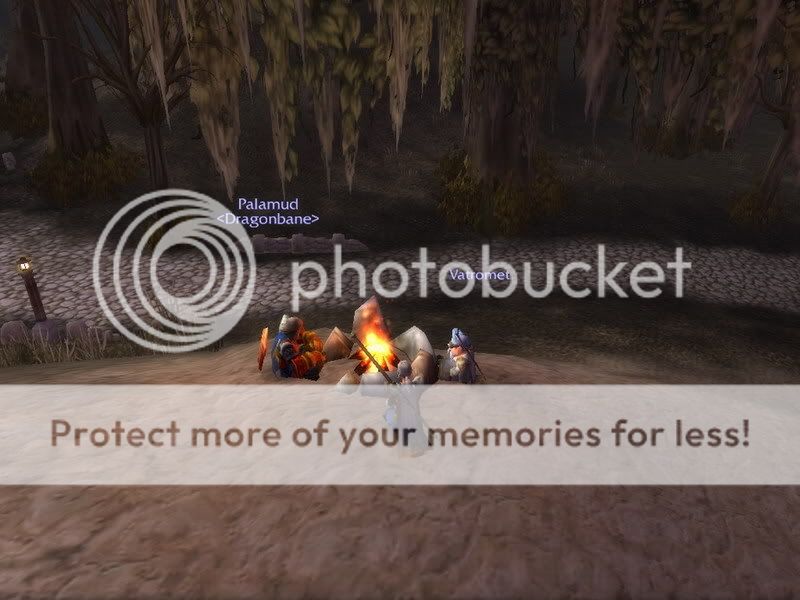 Pre nekih 3-4 meseca, imali smo kvestove za magove u Dastvolov Maršu, i ovako smo se družili dok smo čekali našu dragu prijateljicu Iskru da pređe okean (pomešala brodove, i mesto da uđe u onaj za Teramor, ušla je u brod za Oberdin - momci su joj tur pomerili od zezanja s pričom o ljubavi prema mornarima). Levo sedi Palamud (Goran), Vatromet (njen brat i čudo od gnoma je zdesna), a ja sam u sredini.