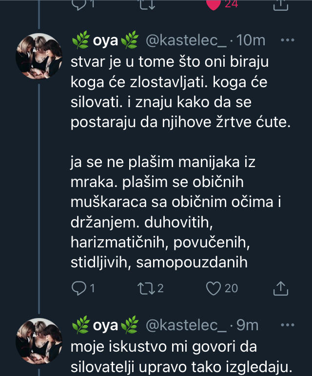 Devojka u tvitu govori o tome - da su silovatelji mahom muškarci koji tako ne izgledaju.