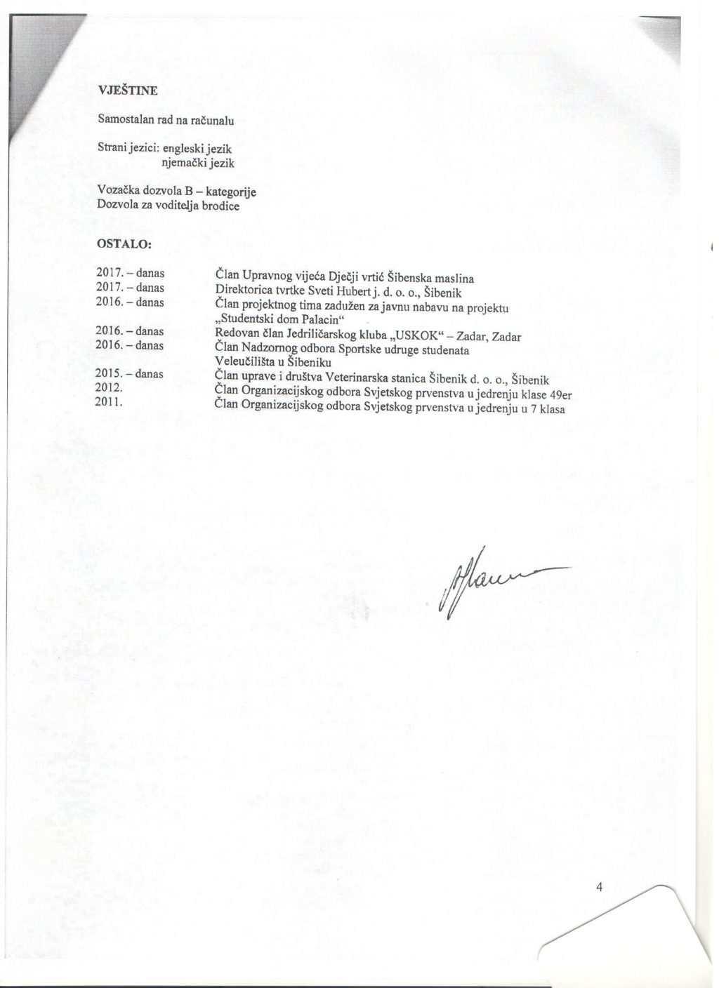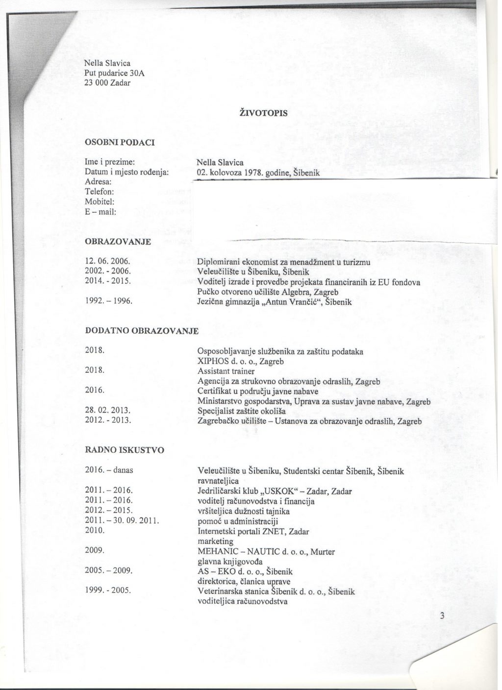 Poznat je moj životopis, s ispisanih 482 dana borbenog sektora elitnog vojnika izvidnika u Domovinskom ratu, ronioca, pilota, doktora društvenih znanosti polja ekonomije, dobitnice više međunarodnih nagrada i priznanja za rad u struci, sudionice znanstvenih ekspedicija, ekoloških programa, osobe koja je jedino i isključivo svoju karijeru kao znanstvenika i stručnjaka gradila uz pomoć svoje obitelji i znanstvenih autoriteta.